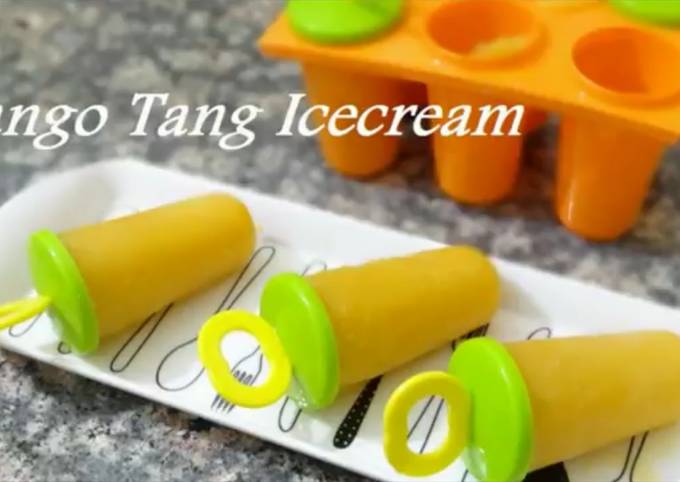 You can cook Mango Tang Icecream Recipe - Kids Favourite Icecream using 3 ingredients and 6 steps. Here is how you cook that.